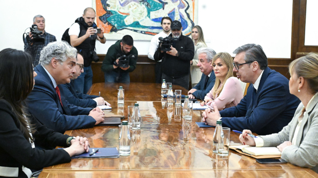 У Председништву Србије одржавају се консултације председника Србије Александра Вучића са представницима Народне странке.