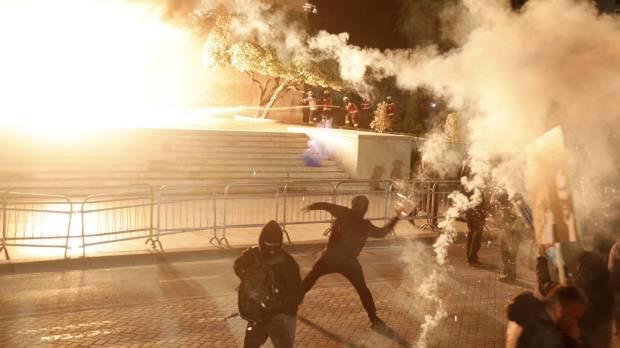 Протест у Тирани – учесници бацали пиротехнику на седиште Владе, повређен полицајац