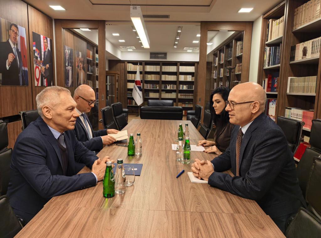 BEOGRAD – Predsednik Srpske napredne stranke (SNS) Miloš Vučević sastao se danas sa ambasadorom Ruske Federacije Aleksandrom Bocan-Harčenkom, a u otvorenom i prijateljskom razgovoru razmotrene su međunarodne prilike, koje se svakodnevno menjaju, kao i bezbednosni i ekonomski izazovi i sva druga pitanja koja se neposredno tiču obe zemlje.